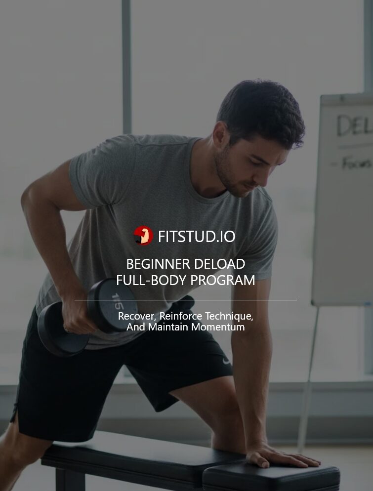 This 1-week Beginner Deload Full-Body Program helps you recover, reinforce technique, and maintain momentum without accumulating fatigue. All working sets should be performed at approximately 50–60% of your normal training load and volume, using lighter weights, stopping well short of failure, and focusing on smooth, controlled reps.