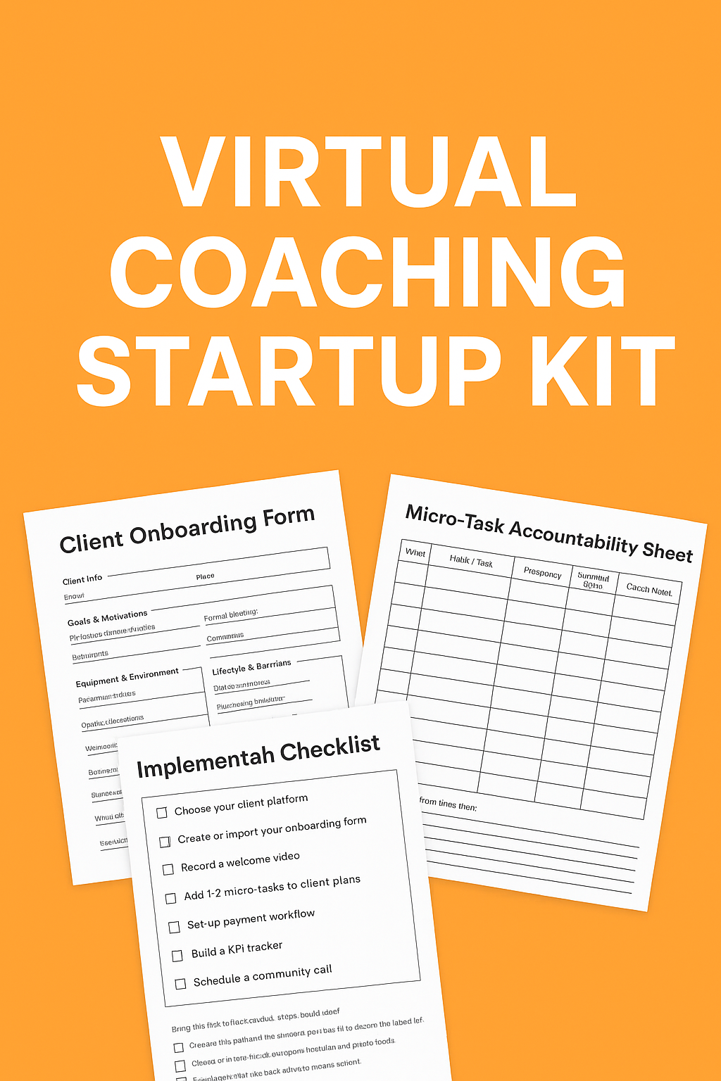 Get the Virtual Coaching Startup Kit — your free bundle of proven templates, trackers, and checklists to help you deliver a seamless, professional online experience.